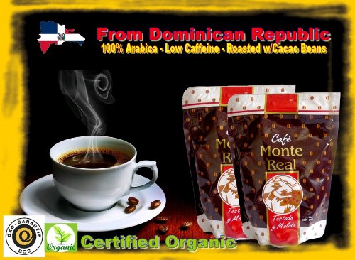 Monte Real coffee is a combination of the best and selected Coffees Beans produced in the Dominican Republic.On the east side of Hispaniola island in the Caribbean Sea, on the slopes of Sierra Bahoruco (up to 1500 m height), about 250 kg of "Santo Domingo Barahona AA" coffee per hectare (2471 acres) are cultivated.This coffee, 100 % Arabic quality, washed, of very hight level and special perfection, is for its nature sweet and very creamy. Extraordinarily fine with a pleasant and just perceptible sour taste it is incomparable for its persistence and aroma. Its very low rate of caffeine (0,8 - 0,9%) is peculiar.Customer Reviews